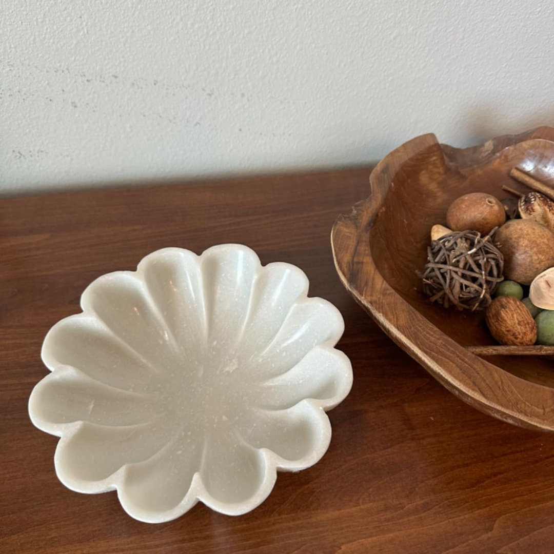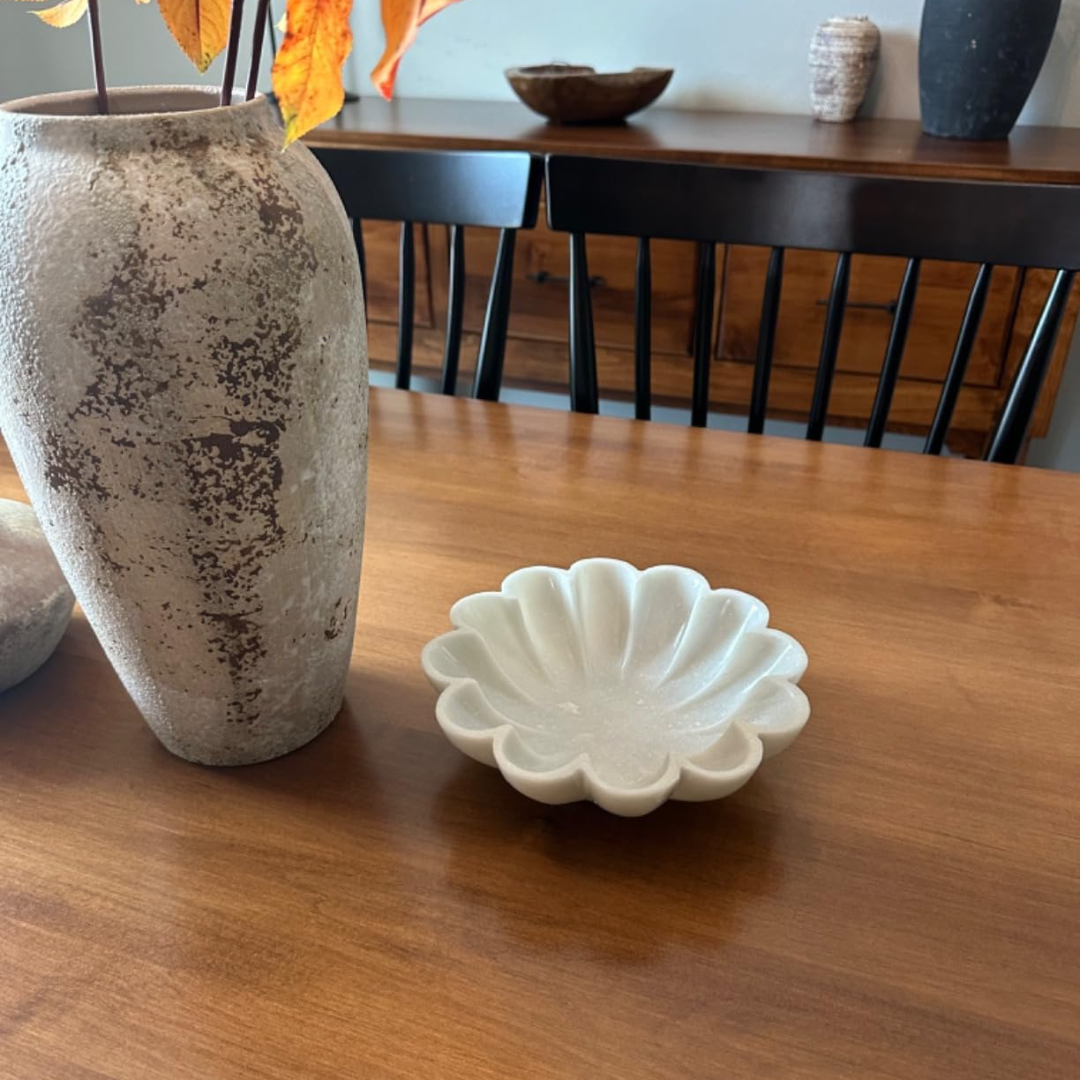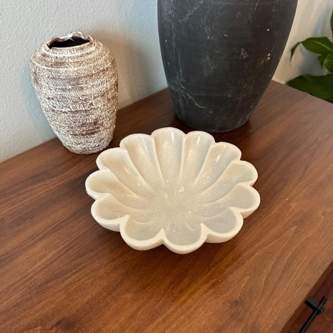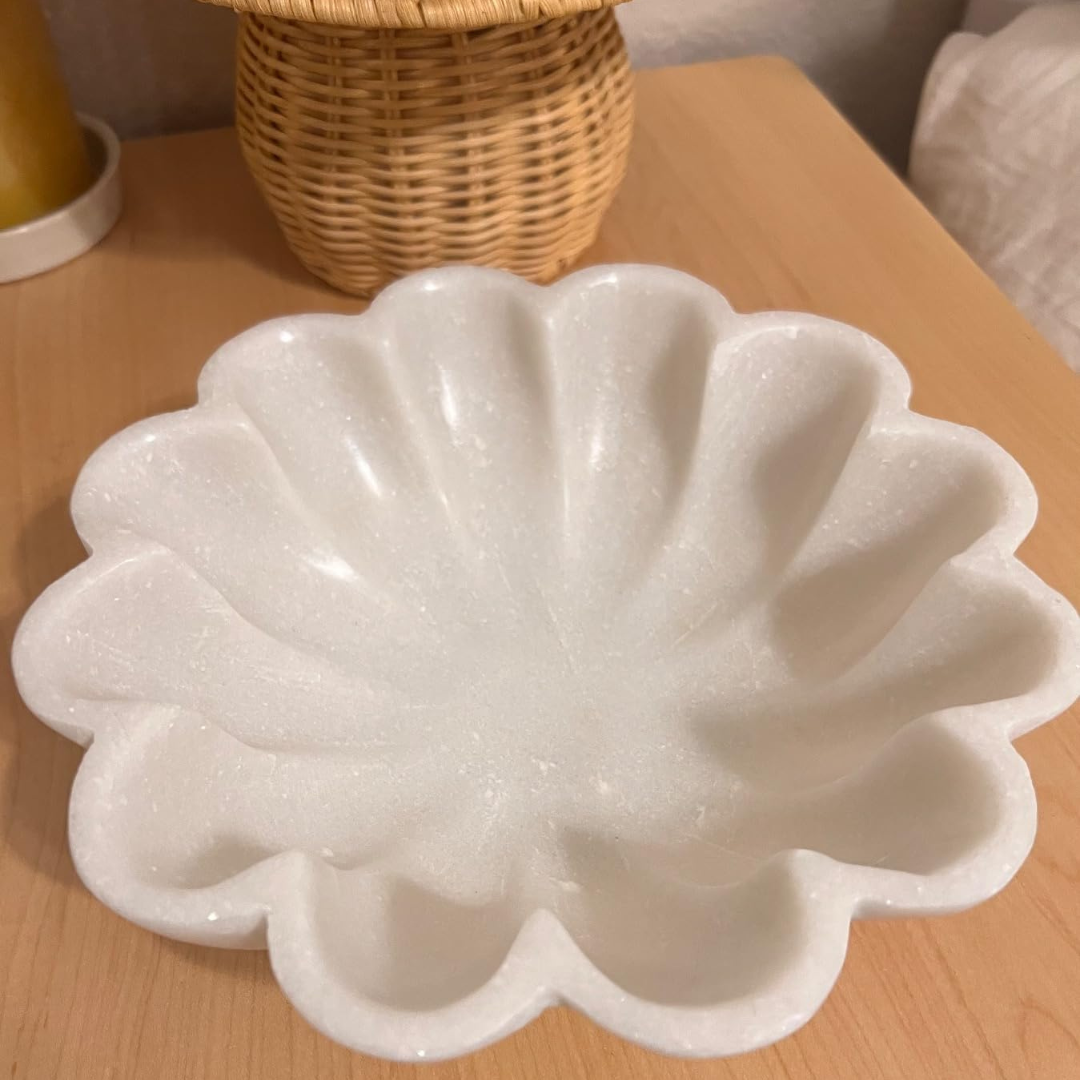 HandCrafted Marble Large Decorative Bowl | White Decorative Bowls for Home Decor | Ruffle Bowl | Scalloped Bowl | Fluted Bowl | Key/Fruit Bowl | Ring Dish | Organic Modern Home Decor Bowl | 6-12 Inches